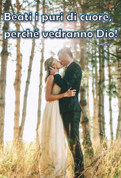 Non tutti colgono la profonda correlazione esistente tra purezza e sacralità della Vita. San Giovanni Paolo II, nell’Evangelium Vitae, la evidenzia: “ La banalizzazione della sessualità è tra i principali fattori che stanno all'origine del disprezzo della Vita nascente: solo un amore vero sa custodire la vita" . Altrettanto forte è il legame tra purezza e sacralità della Famiglia, opera più alta di Dio Creatore. I fidanzati che “bruciano” le tappe dell’amore lasciandosi soggiogare dalla carnalità, non solo mortificano la sessualità, dono di Dio per amare, ma costruiscono la loro famiglia sulla sabbia. Lo spiega chiaramente Benedetto XVI: “ Bruciare le tappe finisce per “bruciare” l’amore, che invece ha bisogno di rispettare i tempi e la gradualità nelle espressioni; ha bisogno di dare spazio a Cristo, che è capace di rendere un amore umano fedele, felice e indissolubile”. Un rapporto ridotto a fisicità è debole e fragile. Tanti matrimoni vanno in frantumi perché tra gli sposi affiorano quelle divergenze che la schiavitù del sesso, da fidanzati, ha reso impossibile scoprire. Sempre Benedetto XVI: “ Non pensate, secondo una mentalità diffusa, che la convivenza sia garanzia per il futuro”. La Chiesa insegna che l’espressione genitale della sessualità è riservata al Matrimonio, un patto di amore totale e definitivo. Questa verità è parte del progetto di Dio sull’amore umano. E si capisce perché: il rapporto sessuale è legato al mistero della Vita e della sua trasmissione. E un figlio, per maturare integralmente, ha bisogno di respirare l’amore totale e perenne dei suoi genitori. Amore che esige sacrificio e dono di sé, che solo la Grazia del Sacramento del Matrimonio può sostenere. La convivenza che rinvia a tempo indeterminato il matrimonio - sempre più ridotto a un vuoto, quanto costoso, rito di convenienza sociale - calpesta e svilisce questo Sacramento. Perché sposarsi in Chiesa, infatti, se i fidanzati compiono, senza percepirne il disordine, i gesti che sono propri del Matrimonio? Papa Francesco, ammonisce: “C’è una distinzione tra l’essere fidanzati e l’essere sposi, che la Chiesa da sempre custodisce in vista della delicatezza e della profondità di questa verifica”. La coppia convivente che esclude il “per sempre”, più facilmente esclude, con la contraccezione e l’aborto, anche un figlio, vera scommessa sul futuro. Al contrario, i fidanzati che vivono castamente la loro relazione fanno di tutto, spinti anche dal desiderio di donarsi nella gioia di un amore totale, per accelerare il giorno delle nozze e formare così famiglie giovani e feconde. Ecco perché l’aumento delle convivenze è all’origine, non solo del pauroso calo dei matrimoni religiosi (con un ritmo tale - 10 mila in meno l’anno - che, fra qualche decina d’anni, di essi non resterà che il ricordo), ma anche del crollo delle nascite che fa dell’Italia il Paese meno fecondo al mondo. La violazione della legge di Dio sulla purezza, dunque, oltre a compromettere la salvezza dell’anima (nessun fornicatore, o impuro, o avaro - cioè nessun idolatra - ha in eredità il regno di Cristo e di Dio”, dice san Paolo), ferisce profondamente anche la società. Per salvare la famiglia e la vita, dunque, è urgente “offrire soprattutto agli adolescenti e ai giovani l’autentica educazione alla sessualità e all’amore, un’educazione implicante la formazione alla castità, quale virtù che favorisce la maturità della persona e la rende capace di rispettare il significato «sponsale» del corpo. (Papa Wojtyla, EV 97). Ecco il senso dell’iniziativa “Ottobre per la purezza” svolto per le strade e nelle scuole di Benevento. Dio ha voluto che ad animare questo apostolato fossero i giovani delle “Voci del Verbo”, i numerosi religiosi, tra sacerdoti, suore e seminaristi, dell’Istituto del Verbo Incarnato, uno splendido ordine fecondo di vocazioni sacerdotali e religiose, e anche delle famiglie. Attraverso incontri per strada e nelle scuole, questi apostoli hanno testimoniato la bellezza della castità e annunciato ai giovani Cristo nel Vangelo delle beatitudini: “ Beati i puri di cuore perché vedranno Dio” . E questi giovani si sono mostrati attenti e desiderosi di informarsi sul tema della purezza, tanto decisivo per la loro vita, quanto coperto da un irresponsabile e generale silenzio. Silenzio che Madre Teresa di Calcutta, appena proclamata santa, ha definito senza mezzi termini, “ impuro ”. Impegnarsi in questo apostolato è difficile, perché è fuori della logica del mondo. Chi lo fa rischia la derisione e l’accusa di oscurantismo, perfino da uomini di Chiesa. Ma Benedetto XVI così li incoraggia: " Non abbiate paura di apparire diversi e di venire criticati per ciò che può sembrare perdente o fuori moda: coloro che sembrano più lontani dalla mentalità e dai valori del Vangelo, hanno un profondo bisogno di vedere qualcuno che osi vivere secondo la pienezza di umanità manifestata da Gesù Cristo ”. anno 2016 Carlo e Annamaria Principe
